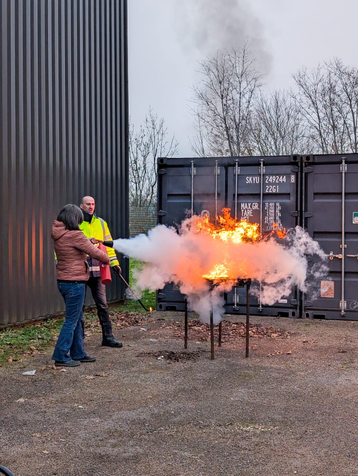 L’atelier pratique (voir les photos) a permis à chacun de se confronter concrètement aux situations, dans un cadre sécurisé et bienveillant, à l’aide de différents types d’extincteurs.